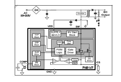 pn8147µçԴоƬÄÚ²¿¼¯³ÉÁËÂö¿íµ÷ÖÆ¿ØÖÆÆ÷ºÍ¹¦ÂÊMOSFET£¬×¨ÓÃÓÚ¸ßÐÔÄÜ¡¢ÍâΧԪÆ÷¼þ¾«¼òµÄ½»Ö±Á÷ת»»¿ª¹ØµçÔ´¡£¸ÃоƬÌṩÁ˼«ÎªÈ«ÃæºÍÐÔÄÜÓÅÒìµÄÖÇÄÜ»¯±£»¤¹¦ÄÜ£¬°üÀ¨ÖÜÆÚʽ¹ýÁ÷±£»¤£¨Íⲿ¿Éµ÷£©¡¢¹ýÔØ±£»¤¡¢¹ýѹ±£»¤¡¢CS¶Ì·±£»¤¡¢ÈíÆô¶¯¹¦ÄÜ¡£Í¨¹ýHi-mode¡¢Eco-mode¡¢Burst-modeµÄÈýÖÖÂö³å¹¦Âʵ÷½Úģʽ»ìºÏ¼¼ÊõºÍÌØÊâÆ÷¼þµÍ¹¦ºÄ½á¹¹¼¼ÊõʵÏÖÁ˳¬µÍµÄ´ý»ú¹¦ºÄ¡¢È«µçѹ·¶Î§ÏµÄ×î¼ÑЧÂÊ¡£Á¼ºÃµÄEMI±íÏÖÓÉÆµÂʵ÷ÖÆ¼¼ÊõºÍSoft Driver¼¼Êõ³ä·Ö±£Ö¤¡£¸ÃоƬ»¹ÄÚÖÃÖÇÄܸßѹÆô¶¯Ä£¿é¡£PN8147ΪÐèÒª³¬µÍ´ý»ú¹¦ºÄµÄ¸ßÐԼ۱ȷ´¼¤Ê½¿ª¹ØµçԴϵͳÌṩÁËÒ»¸öÏȽøµÄʵÏÖÆ½Ì¨£¬·Ç³£ÊʺÏÁù¼¶ÄÜЧ±ê×¼¡¢Eur2.0¡¢ÄÜÔ´Ö®ÐǵÄÓ¦Óá£