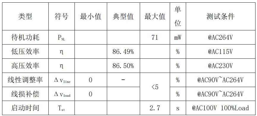 ¡¡¡¡2¡¢AC90VÂú×ãÆô¶¯Ê±¼äµÄÌõ¼þÏ£¬ÊµÏÖAC264VÑù»ú´ý»ú¹¦ºÄ½öΪ71mW£»Í¬Ê±Ð§ÂÊÄܹ»Âú×ã×îÑϸñµÄ “COC_V5_T2” ÄÜЧ±ê×¼£»¡¡¡¡
