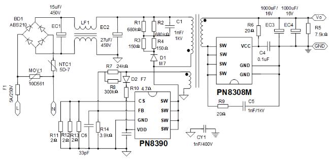 ¡¡¡¡»ùÓÚPN8390+PN8308M¸ß¼¯³É¶ÈÔ­±ß·´À¡12V2AÁù¼¶ÄÜЧ·½°¸£¬Ö§³ÖCCM/QR/DCMÈÎÒ⹤×÷ģʽ£¬½øÒ»²½ÌáÉýµçԴЧÂʲ¢ÏÔÖø¼õС±äѹÆ÷Ìå»ý£¬¶¯Ì¬ºÍEMCÐÔÄÜ׿Խ£¬±£»¤¹¦ÄÜÇ¿´ó£¬Ä¿Ç°´óÅúÁ¿²úÓÚ»ú¶¥ºÐ¡¢Â·ÓÉÆ÷¡¢ÖÇÄÜÒôÏì¡¢¼ÒÓõçÆ÷µÈÓ¦Óó¡ºÏ¡£