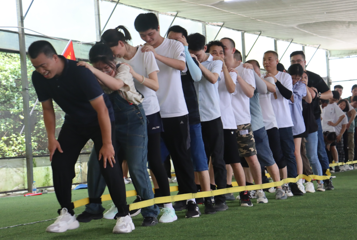 游戏环节,挑战160S、击鼓颠球、巨人脚步、拔河比赛,各个小团队积极参与,快速反应,气氛异常热烈。