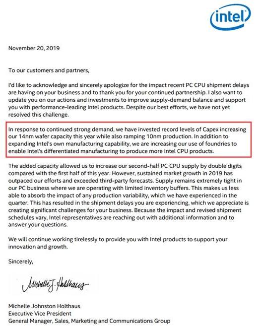 自2018年下半年以来,英特尔一直在应对CPU供应短缺的问题,首先是10纳米芯片的延迟交付,然后是14纳米芯片的短缺,之后英特尔投资10亿美元来扩大其14纳米的生产能力,但据消息报道,英特尔14nm制程再次供不应求,并发布了道歉声明。