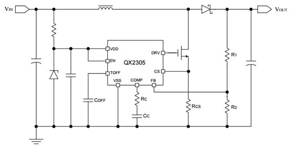 QX2305²ÉÓù̶¨¹Ø¶Ïʱ¼äµÄ¿ØÖÆ·½Ê½£¬Æä¹¤×÷ƵÂÊ×î¸ß¿É´ï1MHz£¬¿ÉʹÍⲿµç¸ÐºÍÂ˲¨µçÈÝÌå»ý¼õС£¬Ð§ÂÊÌá¸ß£¬½ÚÊ¡PCBÃæ»ý¡£¹Ø¶Ïʱ¼ä×îСΪ620ns£¬²¢¿Éͨ¹ýÍⲿµçÈݽøÐе÷½Ú£¬¹¤×÷ƵÂÊÒ²¿É¸ù¾ÝÓû§ÒªÇó½øÐе÷½Ú¡£ÏµÍ³ÓÉÓÚ²ÉÓõçÁ÷Ä£¿ØÖÆ·½Ê½£¬¶ÔÊäÈëĸÏßµçѹ±ä»¯Óë¸ºÔØË²±ä¾ßÓпìµÄ˲̬ÏìÓ¦ËÙ¶È¡£Ð¾Æ¬¾ßÓÐÖðÖÜÆÚÏÞÁ÷±£»¤¡¢Êä³öµçѹ¹ýѹ±£»¤¹¦ÄÜ¡£